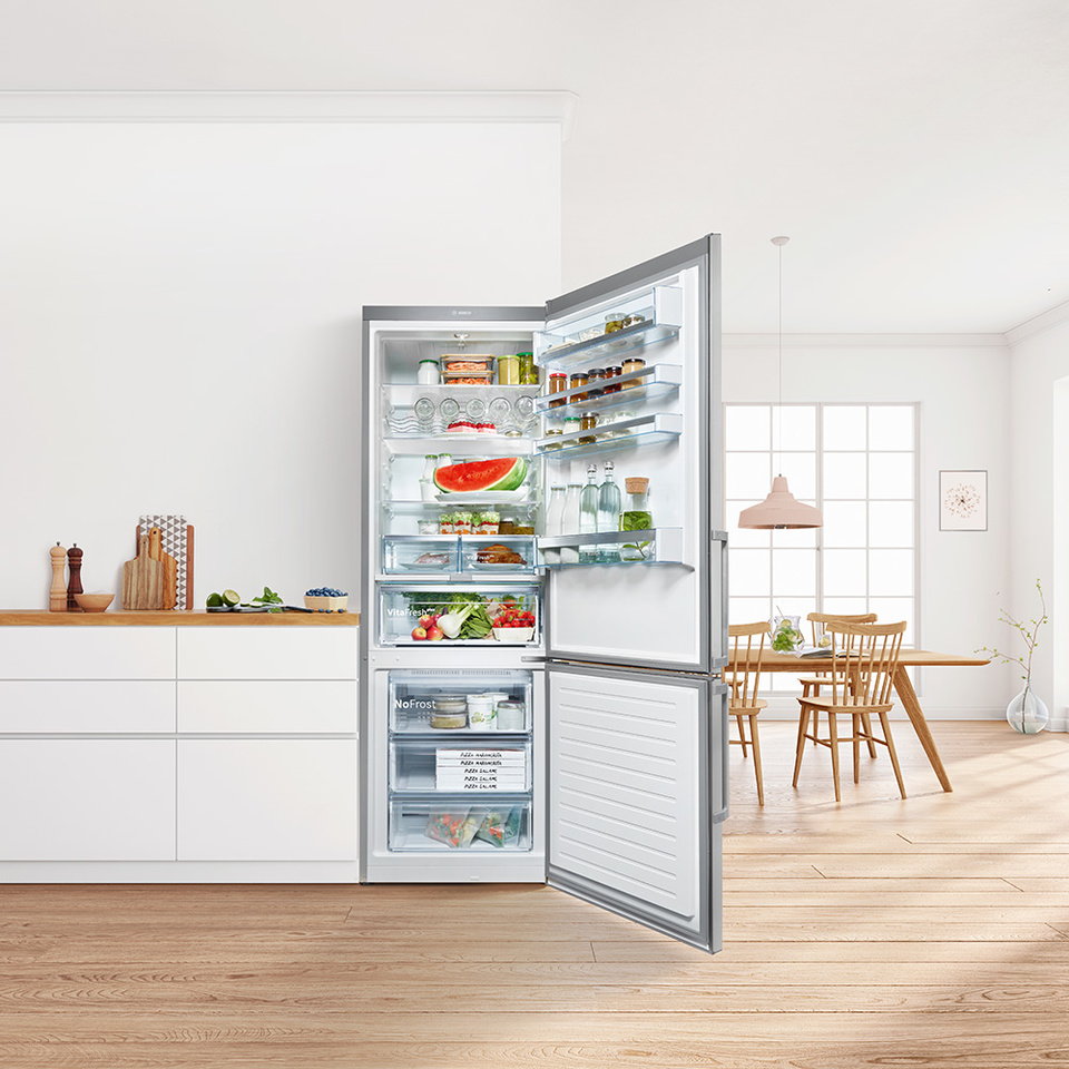 In einen guten Kühlschrank gehören frische Lebensmittel und feinste Technik von Bosch.